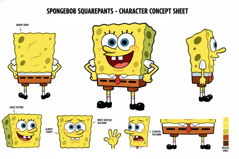 - Prompt:Un foglio concettuale per il personaggio, dettagliato con viste frontali, posteriori e laterali, inclusi schizzi ravvicinati e note di progettazione.