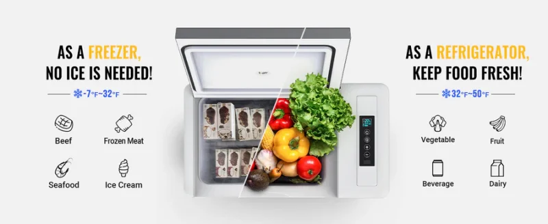 Unlike passive coolers or thermoelectric options that just reduce temperatures slightly, this fridge uses a real compressor that chills contents down to -4°F (-20°C). That’s cold enough to freeze meat or ice cream—no ice required.