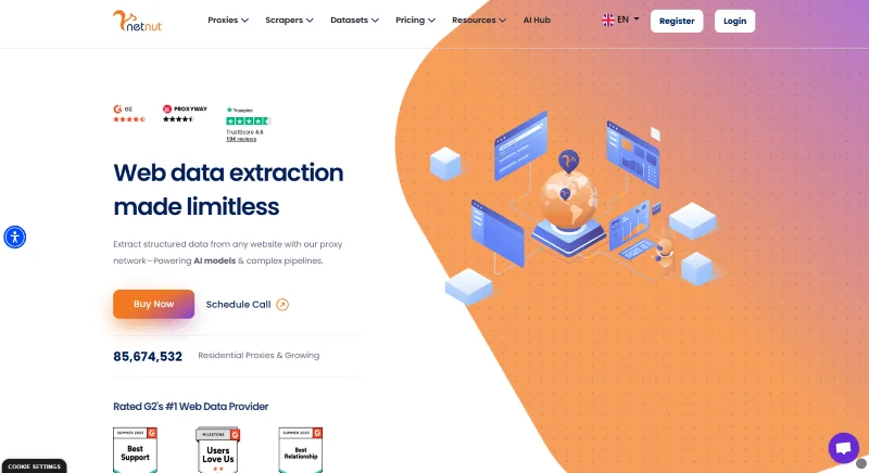 NetNut specializes in static residential proxies optimized for seamless web data extraction. Its network delivers exceptional speed that eliminates lag during scraping sessions. This provider focuses on reliable data collection for both individual and business applications. Many users select this UK proxy service for market research and competitive analysis.