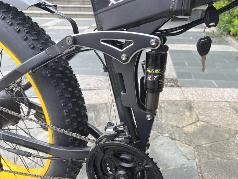 - Ammortizzatori: l’ammortizzatore a doppio olio a molla, la sospensione posteriore a coda morbida migliora la resistenza agli urti, fornendo prestazioni eccellenti. La sospensione a doppio olio a molla viene utilizzata per fornire al ciclista un’esperienza di comfort più forte durante una collisione.