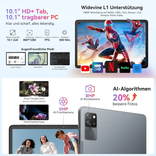 Inoltre, il supporto Widevine L1 consente di vedere Netflix, Prime Video e Disney+ in vera risoluzione 1080p, accompagnato da doppi altoparlanti stereo che garantiscono un audio immersivo e ricco di dettagli.