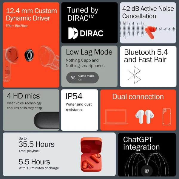 I CMF Buds 2a offrono una cancellazione attiva del rumore fino a 42 dB, capace di filtrare: