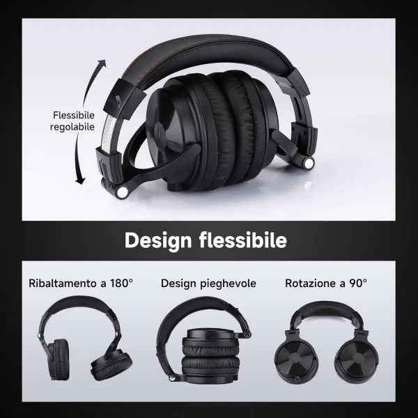 Un altro punto forte? La batteria. Con oltre 110 ore di riproduzione, le OneOdio Pro C ti accompagnano per settimane senza bisogno di ricarica. E quando serve, puoi usarle anche con cavo grazie all’ingresso jack e al microfono in-line incluso. Ideali per viaggi lunghi, maratone di studio o giornate di lavoro senza interruzioni.