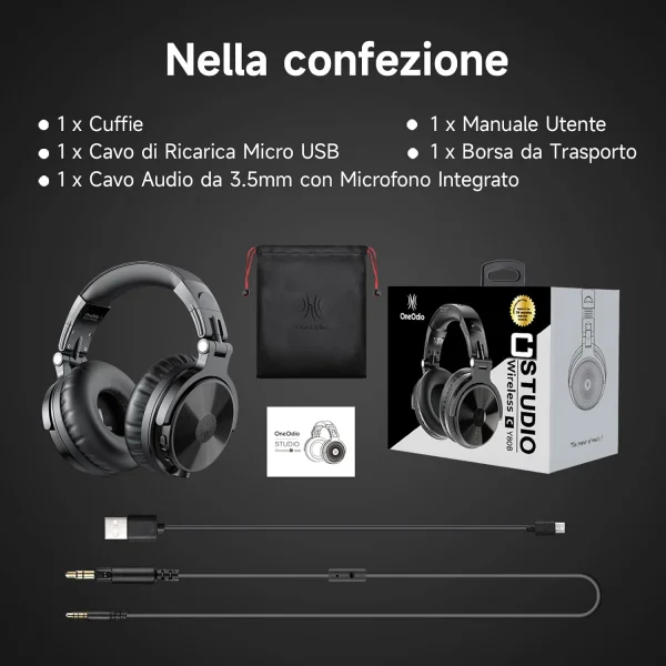 Le OneOdio Pro C funzionano con qualsiasi dispositivo Bluetooth o con uscita audio classica: smartphone Android e iOS, tablet, PC, console portatili e lettori audio. E per la tua tranquillità, hai due anni di garanzia inclusi.