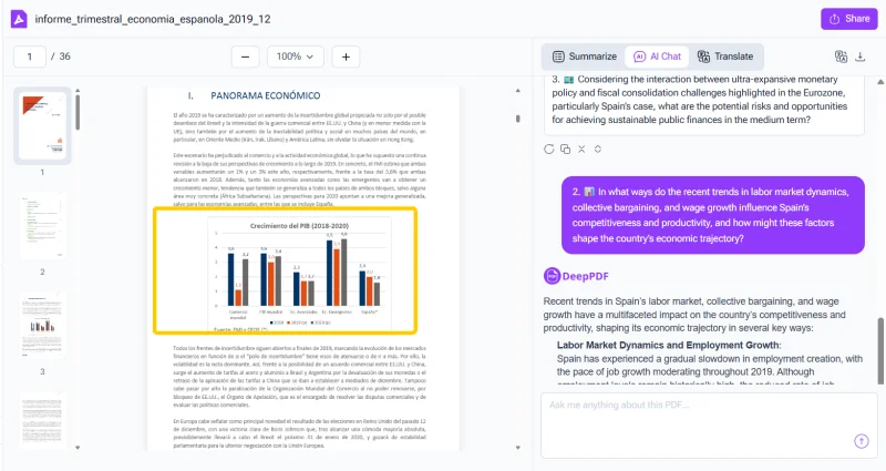 DeepPDF itself also has an integrated PDF translator, which means you can combine both tools — translate your PDF first, then chat with it in your preferred language.