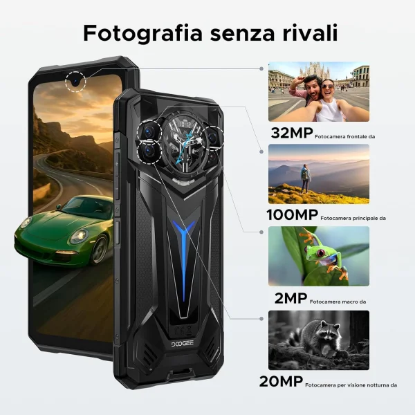 Doogee non ha trascurato il comparto fotografico. Il S200 Ultra monta una tripla fotocamera posteriore da: