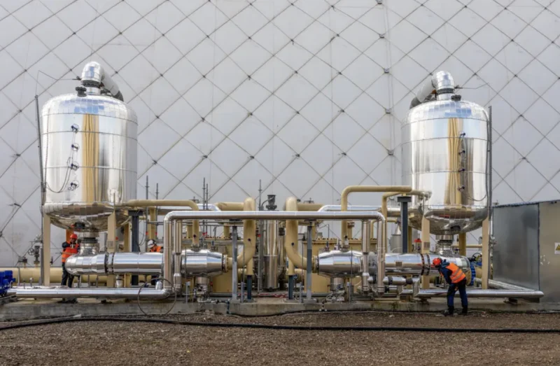 Il cuore del progetto è una gigantesca cupola gonfiabile, diventata ormai il simbolo di un approccio pragmatico alla transizione energetica. Un sistema che non distrugge la CO₂, non la demonizza, ma la utilizza come mezzo fisico di accumulo dell’energia.