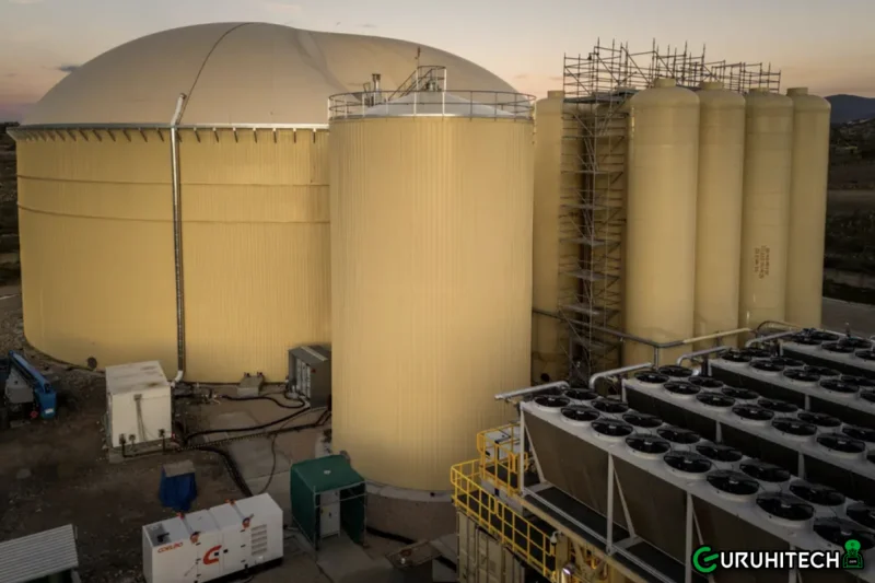 Il principio è semplice e ingegneristicamente elegante. L’energia in eccesso prodotta da sole e vento — che oggi spesso viene sprecata — viene immagazzinata in una batteria a CO₂. All’interno della cupola sono presenti circa 2.000 tonnellate di anidride carbonica pura, un gas naturale, non tossico e già largamente utilizzato in ambito industriale.