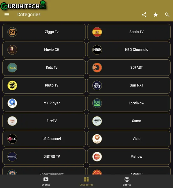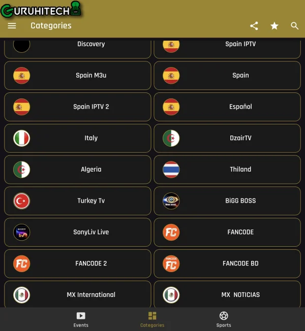 Gee Sports non si limita allo sport. Nella sezione “Live TV” l’utente può esplorare un catalogo vastissimo di canali internazionali, tra cui: