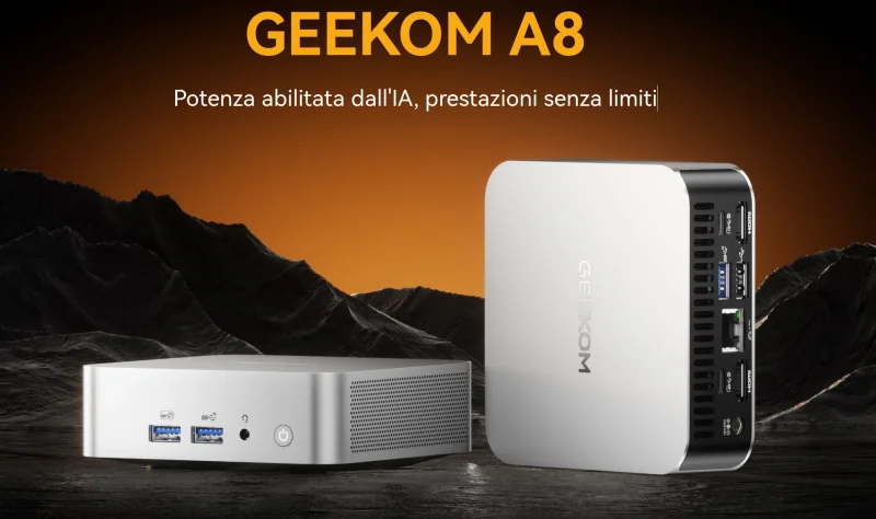 1. GEEKOM A8 Mini AI PC: 200€ di sconto su un concentrato di potenza AI