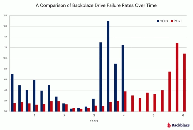 Oggi, il tasso medio di guasto annuo (AFR) dei modelli più recenti è di circa 1,3% nel primo anno e solo 4,25% dopo dieci anni di funzionamento continuo. Nel 2013, la stessa cifra toccava il 13% dopo appena tre anni.