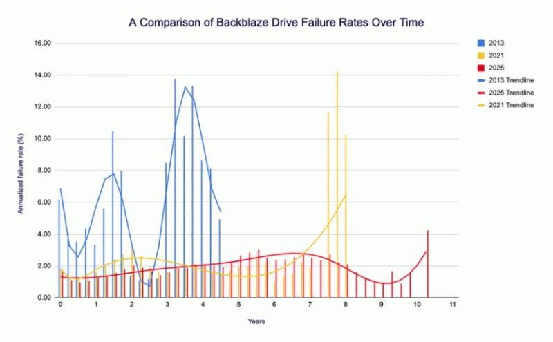 L’azienda americana ha pubblicato un’analisi su oltre 317.000 dischi rigidi installati nei propri data center tra il 2013 e il 2025, e i risultati hanno dell’incredibile: i dischi moderni si guastano quasi tre volte meno rispetto a quelli di dieci anni fa.