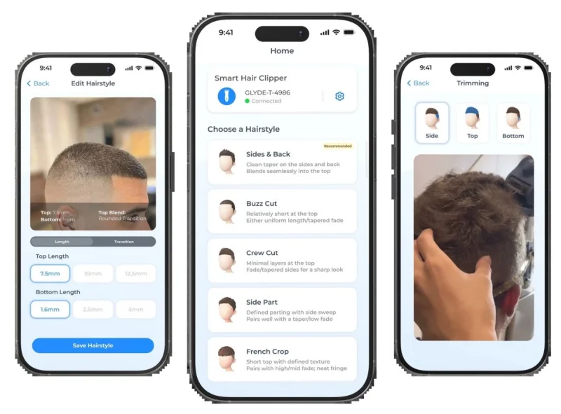 Il funzionamento di Glyde è tanto semplice quanto futuristico. Prima di iniziare, l’utente deve scegliere il risultato desiderato tramite un’app mobile, selezionando stile, lunghezza e tipo di taglio. A quel punto entra in gioco l’elemento più curioso del sistema: una maschera speciale, che va indossata sulla testa.