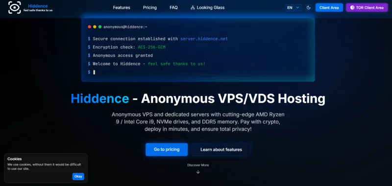 Hiddence stands out as one of the few truly anonymous hosting providers on the market.