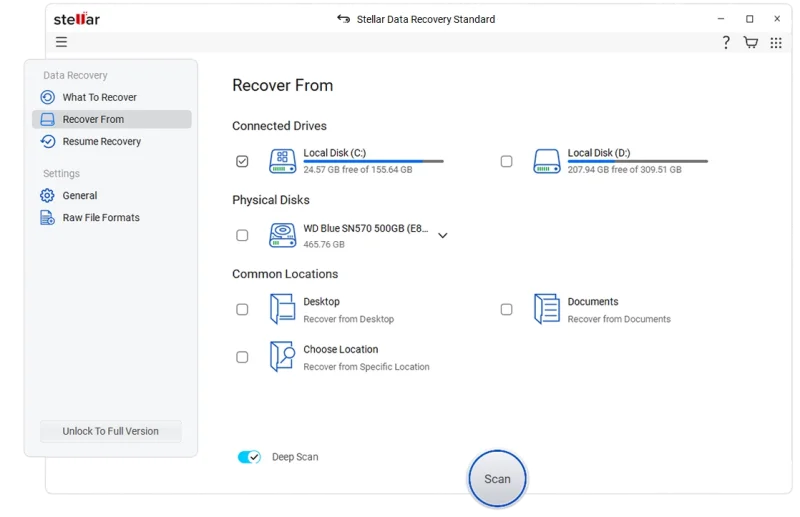 Here’s a simple step-by-step process you can follow when using most recovery tools, including Stellar Data Recovery: