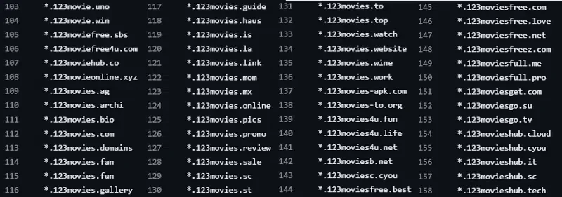 La blocklist incriminata contiene oltre 11.000 domini teoricamente legati alla pirateria. In pratica, il risultato è comico e inquietante al tempo stesso: