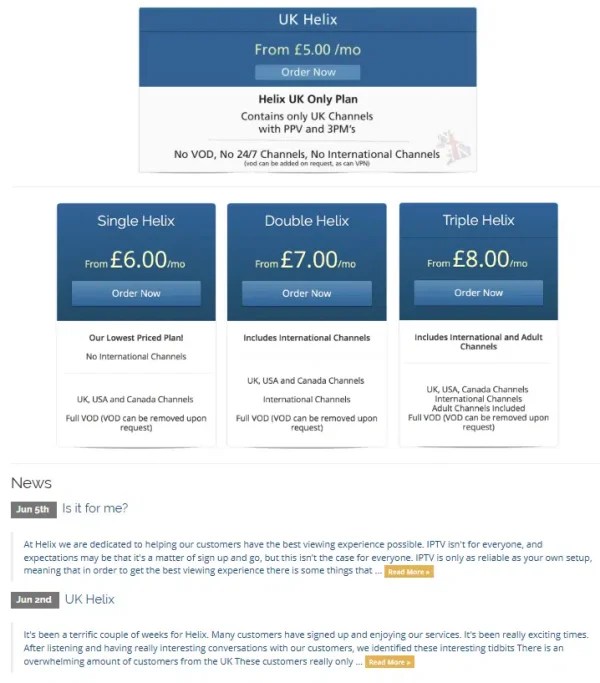 Lanciato inizialmente come HelixHosting.ninja, e poi migrato su HelixHosting.xyz, il servizio offriva abbonamenti a 5 sterline al mese per migliaia di canali, comprese partite delle 15:00 della Premier League – una vera calamita per gli inquirenti.