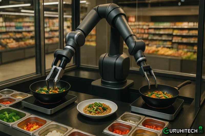 La parte più affascinante è che tutto avviene a vista. La teca trasparente permette ai visitatori di osservare ogni singola fase del processo, trasformando il pranzo in uno spettacolo tecnologico. È un tipo di intrattenimento mai visto nel mondo dei supermercati: una cucina che lavora instancabilmente senza cuochi, senza pause, senza variazioni di qualità.