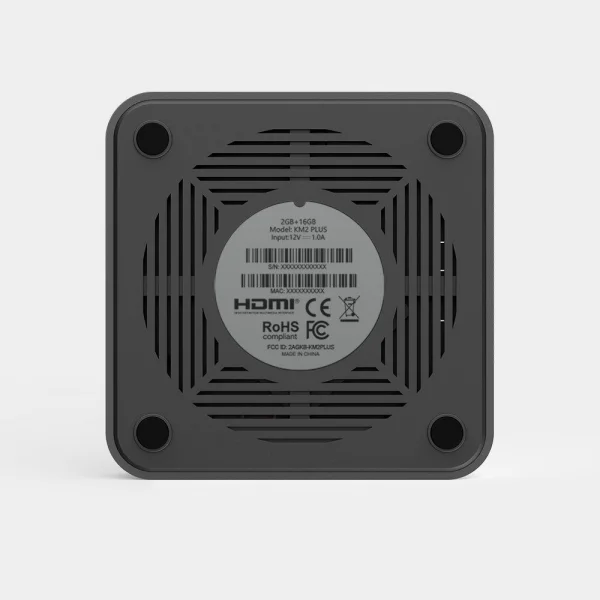 Il primo contatto con il KM2 PLUS Deluxe è sorprendentemente piacevole. La scocca è leggera, il design pulito, il formato compatto. Non ha quella sensazione “cheap” che alcuni box Android trasmettono già al primo tocco. Sulla superficie trovi una copertura trasparente con il logo MECOOL, mentre sotto ci sono i piedini in gomma e le feritoie per la ventilazione.