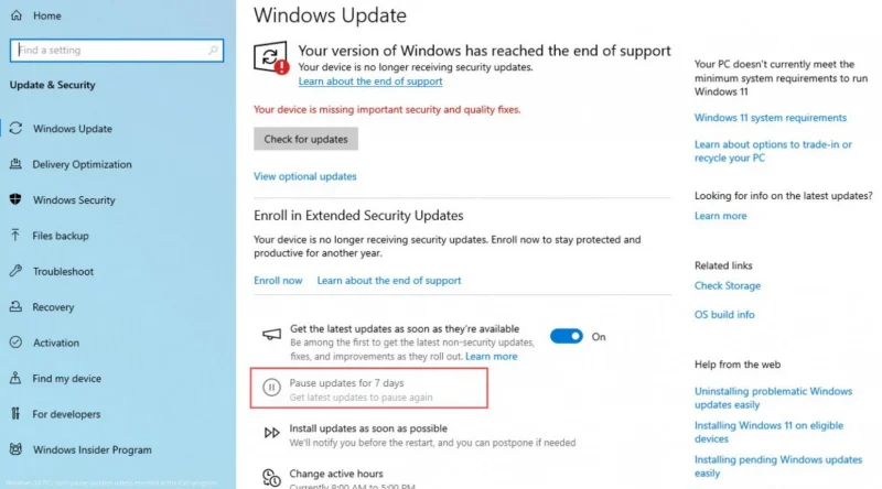 Secondo le segnalazioni emerse sui media specializzati, sui PC non iscritti al programma ESU (Extended Security Updates) il tasto per sospendere gli aggiornamenti è improvvisamente disattivato.