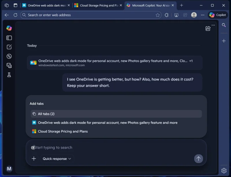 Per ora, però, l’assistente non può interagire liberamente con le schede già aperte nel browser, a meno che non venga esplicitamente istruito. Ma è solo questione di tempo: l’obiettivo è arrivare a un Copilot capace di gestire l’intero flusso di lavoro online.