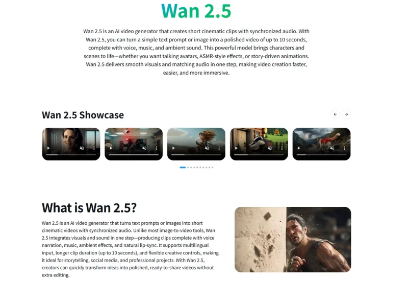 Wan 2.5 focuses on long-form and motion-rich video generation, synchronizing visuals and sound seamlessly.