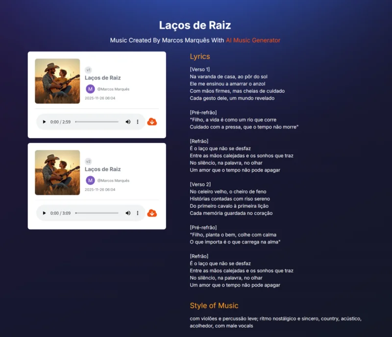 I sat at my computer, feeling the familiar gap between my intent and my ability. That is when I turned to the technology behind AISong.ai. I didn’t need a studio; I needed a translator. I input my simple poem. I selected a style: “Soft acoustic guitar, gentle female vocals, slow tempo, warm atmosphere.”