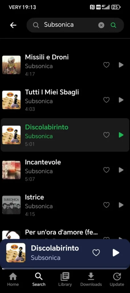 - Download delle canzoni per l’ascolto offline