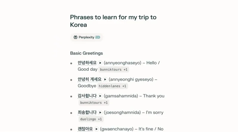 La nuova modalità di Perplexity rileva automaticamente quando l’utente sta cercando di studiare o tradurre una lingua straniera e propone un elenco di parole tematiche, con tanto di pronuncia audio, trascrizione fonetica e frasi di esempio direttamente nella pagina dei risultati.