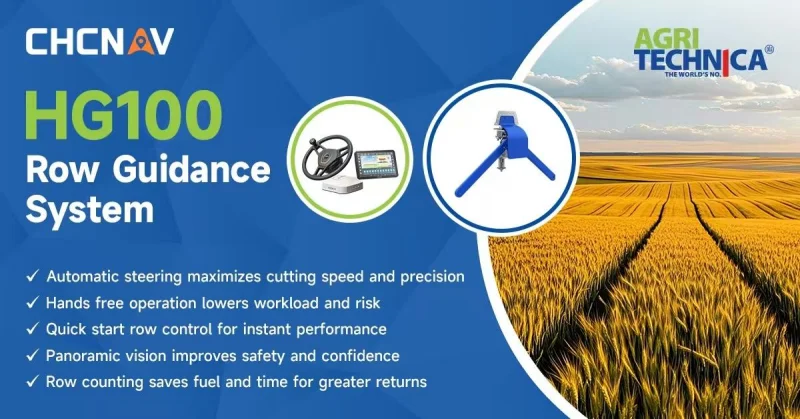 HG100 (Guida alla Raccolta): Garantisce la raccolta con precisione di fila per colture come il mais, riducendo le perdite e l’allettamento.