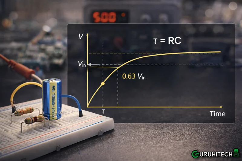 Physically, τ represents the time it takes for the capacitor’s voltage to reach approximately 63.2% of its final value during charging, or to drop to 36.8% during discharging.
