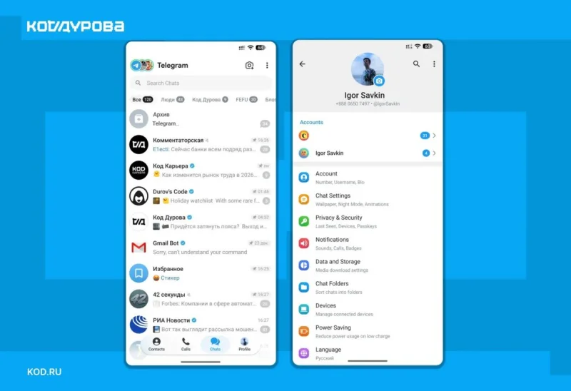 La novità che salta subito all’occhio è anche quella più simbolica. Il menu laterale scompare. Al suo posto compare un pannello di navigazione inferiore, fisso e sempre accessibile, con le sezioni principali dell’app: contatti, chiamate, chat e profilo. È una scelta che gli utenti iOS conoscono bene da tempo e che ora arriva anche su Android, segnando di fatto la volontà di unificare il design di Telegram su tutte le piattaforme.
