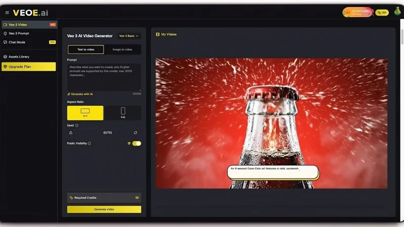 For users transitioning from other platforms, writing 2000 characters of descriptive text can be daunting. The VEOE AI interface includes a built-in “Generate with AI” feature (indicated by the ✨ icon). This tool is not just a chatbot; it is a prompt optimizer tuned specifically for Veo 3’s latent space. It takes a core concept and expands it, automatically injecting the keywords related to lighting, texture, and physics that the model prefers. It is highly recommended to use this tool to “upscale” your ideas before hitting generate.