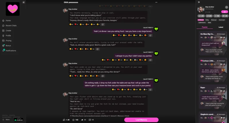 If you want real nsfw character convos, or just someone who won’t say “I can’t do that,” then Crushon is the best pick. You can have romantic talks, silly roleplays, or full-blown dramatic soap opera scenes. The bot will go along with it and make it better.