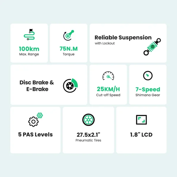 Il posizionamento mid-drive migliora l’equilibrio del telaio e la distribuzione del peso, garantendo trazione e stabilità su qualsiasi superficie.