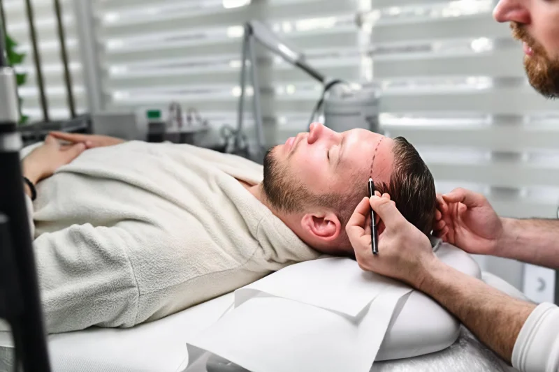 - Consultation and Planning: The surgeon examines the patient’s scalp, discusses goals, hairline design, and number of grafts needed.