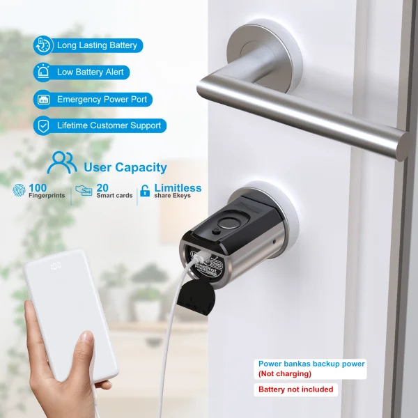 The built-in emergency key slot and USB-C backup power port ensure you’ll never be locked out.