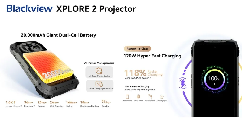 XPLORE 2 Projector: Blackview reinventa il rugged con proiettore 3.2K e batteria da 20.000 mAh